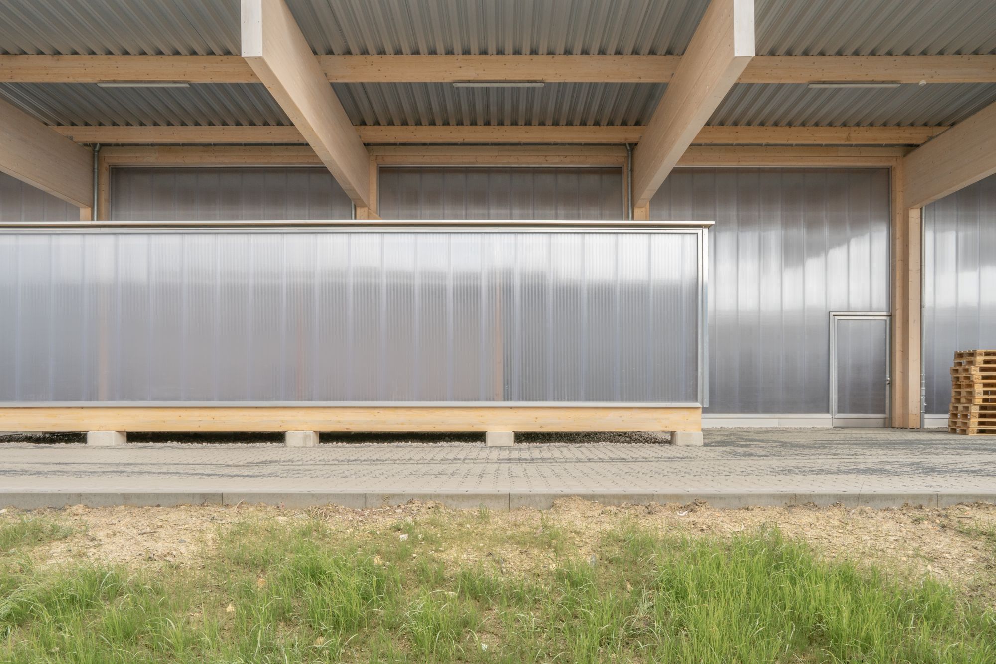Im Industrie- und Gewerbegebiet in Altenkirchen gelegen, ist die neue Lager- und Produktionshalle der Schumann Project GmbH als Holzbinderkonstruktion in einer Bauzeit von sechs Monaten entstanden. Die Primärkonstruktion besteht aus austarierten Brettschichtholzbindern im Achsraster von sechs Metern. Gelagert werden diese in den Gabeln geteilter und teileingespannter Stützen. Die weit auskragenden Binder entlasten die Feldmitten und generieren eine schlanke Bauteildimensionierung. Umhüllt wird die Lager- und Produktionshalle von einer transluzenten Polycarbonat-Fassade mit zweifach geteilten Sektionaltoren.